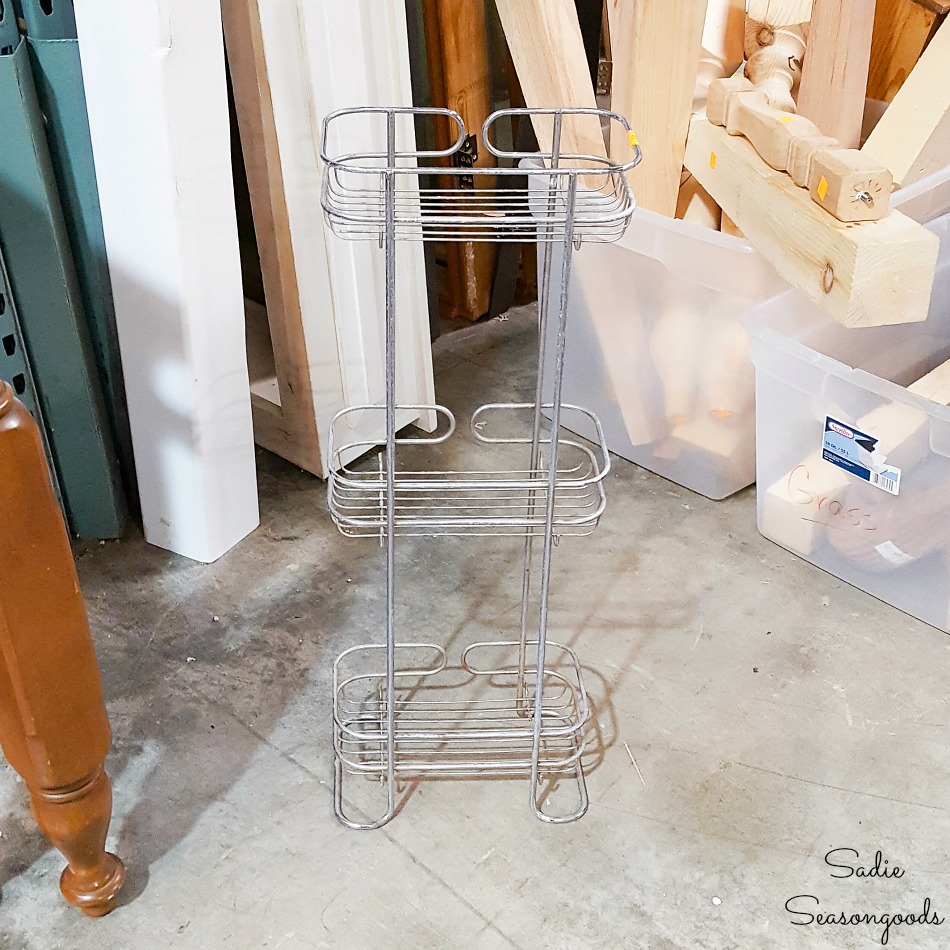 Once it was relatively clean, I got ready to spray paint the standing shower caddy. I used a dark bronze paint to give it a fresh, but vintage-y appearance.