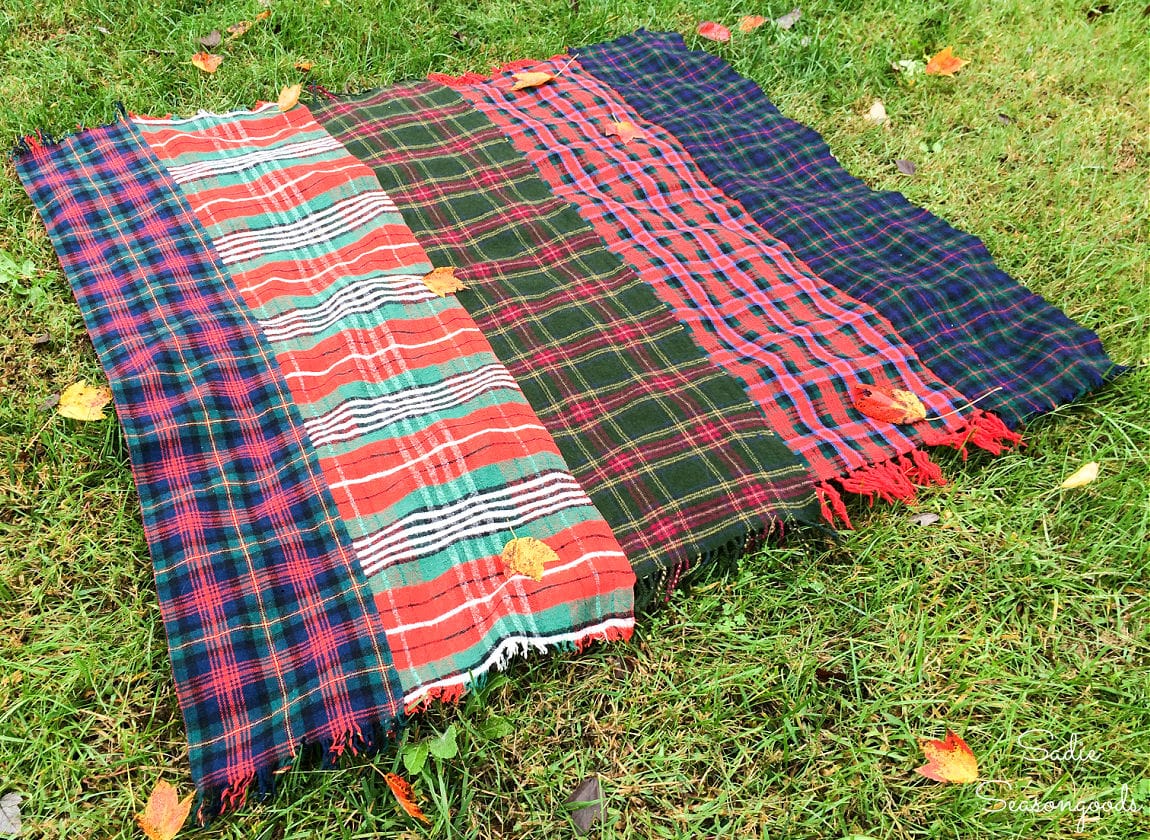A lot of wool scarves end up at thrift stores. Maybe their owners moved to warmer climates or moths got the best of them- anything is possible. But either way, they are fun to stitch together into a patchwork throw blanket to use as cooler weather settles in.