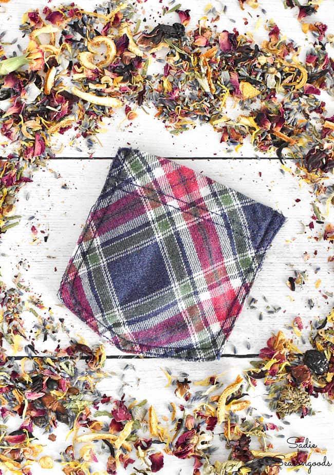 There are a surprising number of ways to upcycle the pockets from your button down shirts. Making sachets or potpourri pouches for your dresser drawers is just one of those ideas. And the sewing part? Just across the top to keep it closed.