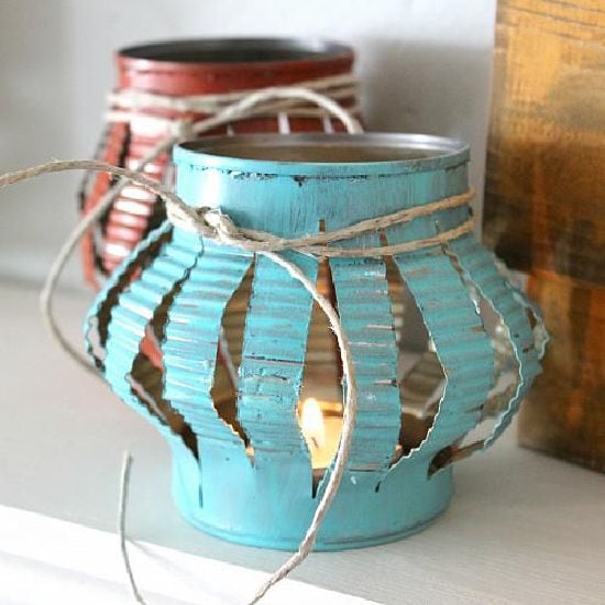 Perfect for an outdoor party, these tin can lanterns look fabulous when they’re done. Requiring some metal cutting and “squashing” the cans carefully with weights means this is a project for more experienced crafters. But I think the result is definitely worth the effort, don’t you?