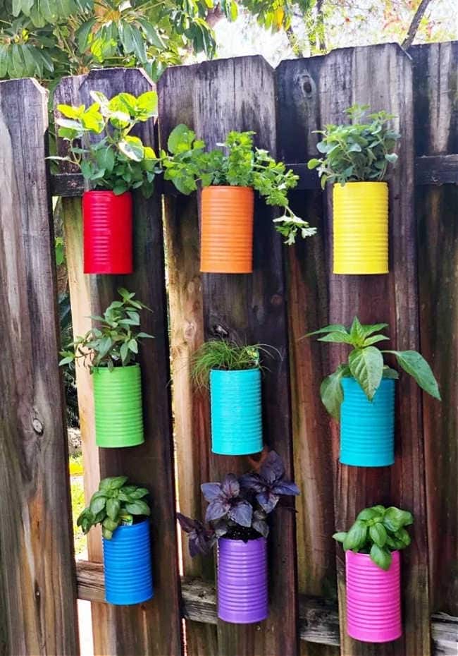 Here’s a great way to maximize space in your backyard with the help of a fence and a few tin cans. A vertical herb garden like this is a great way to punch up your kitchen game while upcycling a bunch of cans instead of tossing them out.